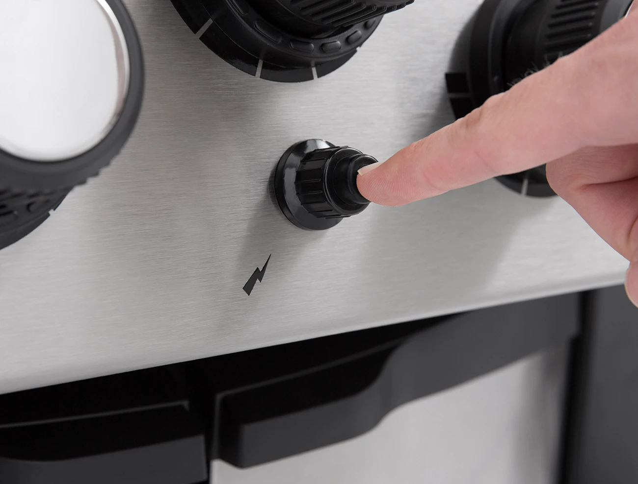 • Drehspieß-Brenner mit 4,4 kW und Seitenbrenner mit 2,7 kW