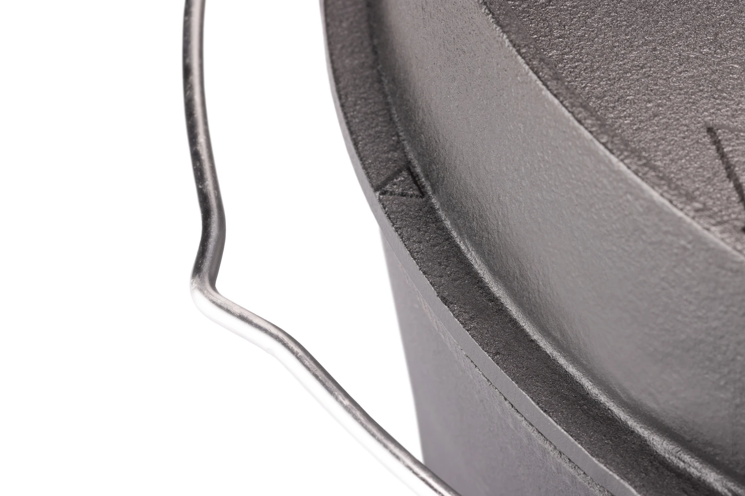 Insbesondere durch das verwendete Material ist der Feuertopf ein komplett universell einsetzbarer Begleiter beim Kochen und Grillen. Das massive und hochwertige Gusseisen sorgt für eine hervorragende Wärmeleitfähigkeit sowie Wärmespeicherung, wodurch die Speisen im Dutch Oven sehr gleichmäßig gegart werden.