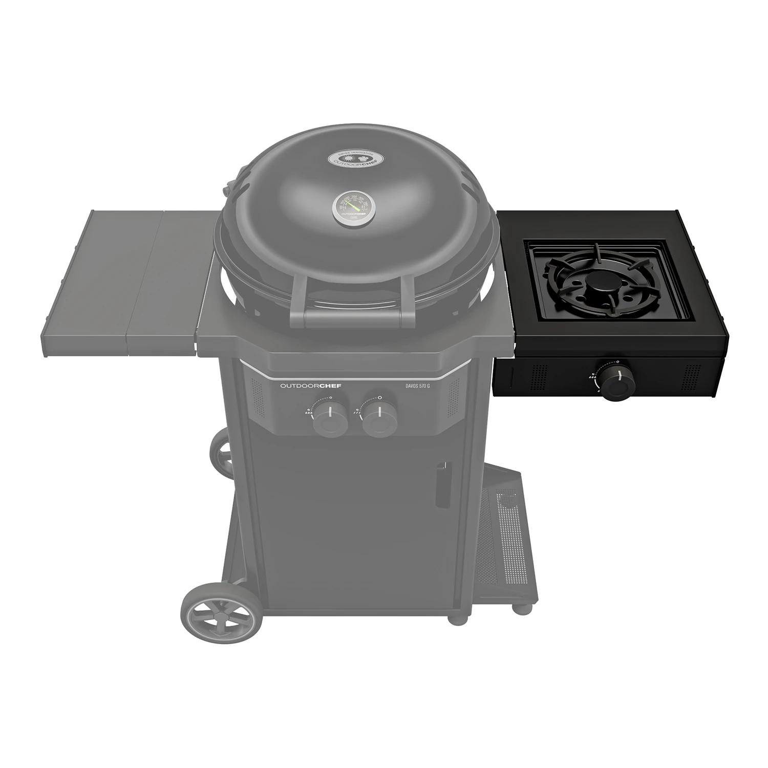 Die Outdoorchef Cooking Zone ist in eine Seitenablage integriert und lässt sich so ganz einfach an ihrer Outdoorchef Davos Kugelgrill Station befestigen. Für Stabilität sorgt eine im Set enthaltene Unterbau Erweiterung.