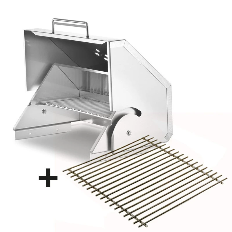 Ein passende Edelstahl Rostauflage und ein Warmhalterost sind bei der Schwenkhaube bereits dabei, denn es können nur Rostauflagen ohne Griffe verwendet werden.